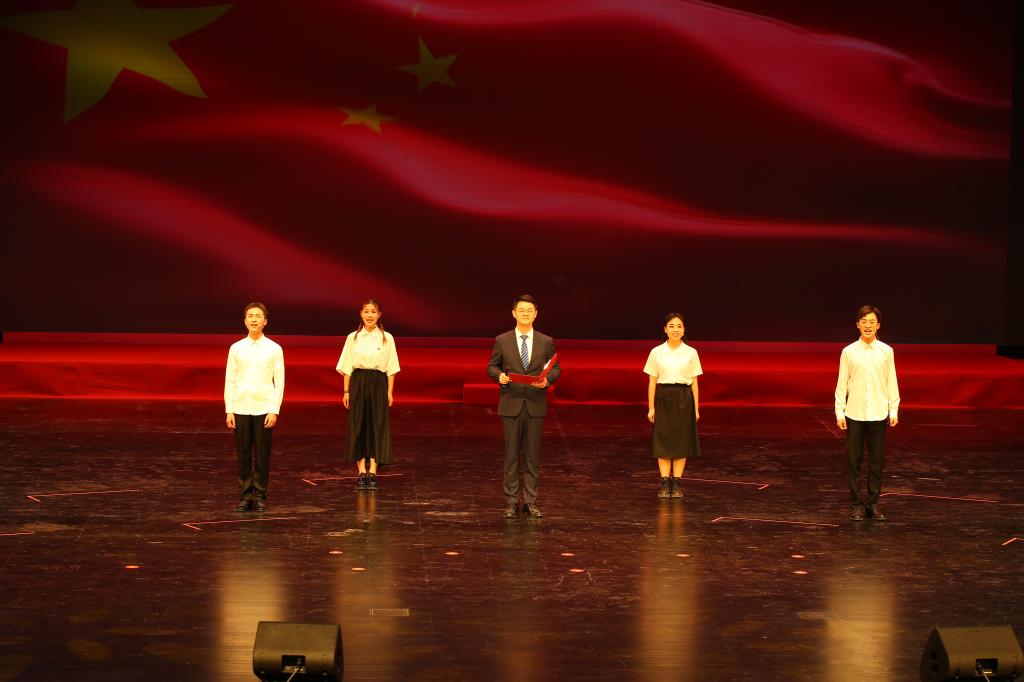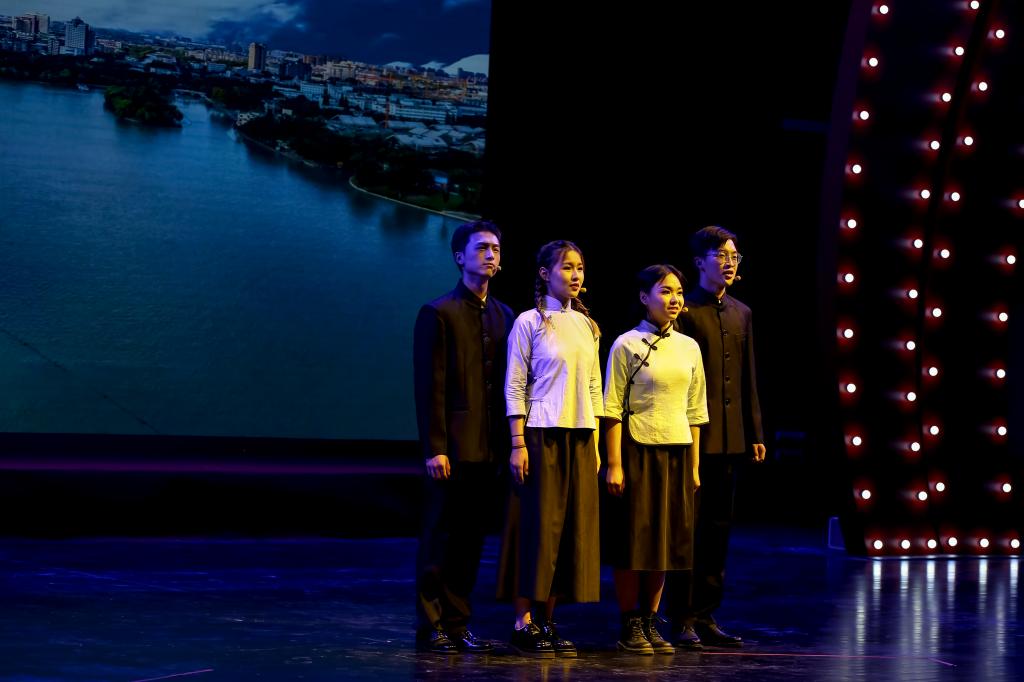 话剧《初心》剧组陈燕、王嘉宜创作原创的情景诗歌《巨龙腾飞》,由嘉兴市广播电视集团知名主持人孙炜航领诵,《初心》团队成员同台朗诵。诗朗诵情意真挚,激情饱满,语言铿锵有力,掷地有声。诗歌回顾了祖国栉风沐雨的历程,歌颂时代变迁背景下腾跃而起的中国巨龙。